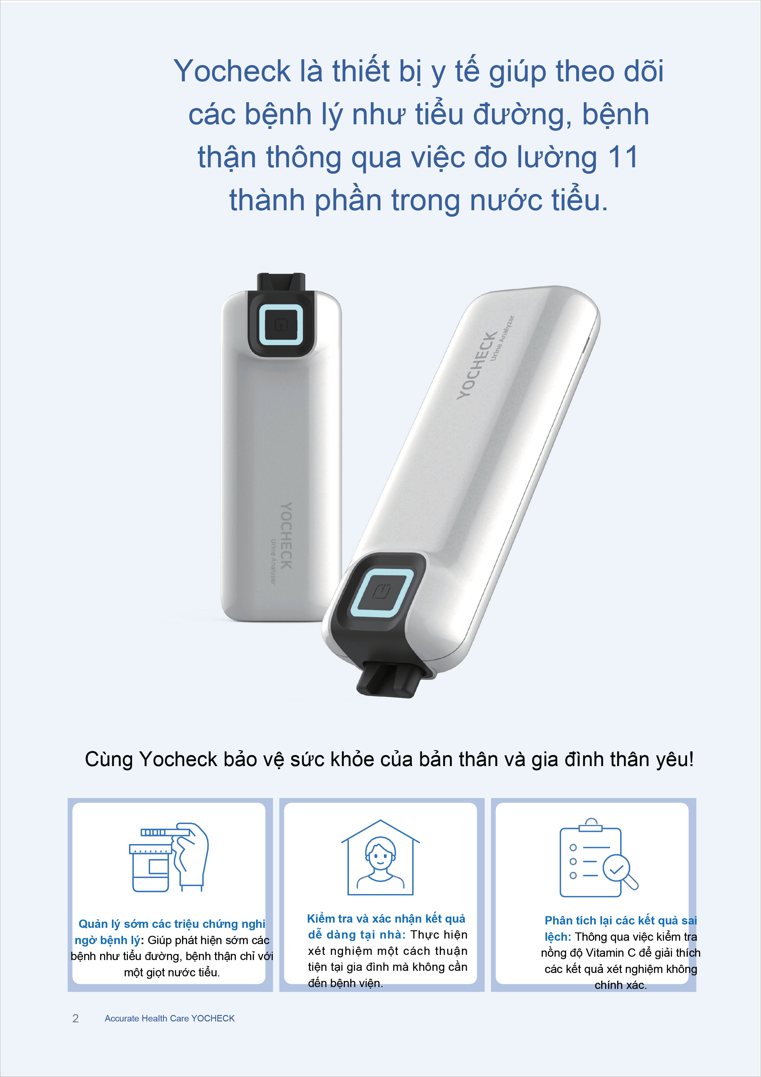 Yocheck là thiết bị y tế giúp theo dõi các bệnh lý như tiểu đường, bệnh thận thông qua việc đo lường 11 thành phần trong nước tiểu.